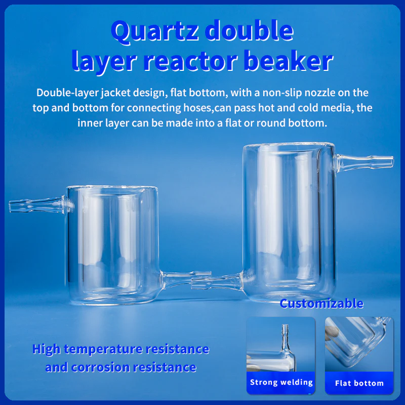 Nuestros reactores encamisados de cuarzo de alta pureza están diseñados para aplicaciones avanzadas de laboratorio e industriales que requieren un control preciso de la temperatura y una alta inercia química. Con un diseño de doble pared y boquillas antideslizantes, estos reactores permiten una circulación eficiente de medios calientes o fríos (como agua o aceite) en la camisa exterior, posibilitando un calentamiento, enfriamiento rápido o un mantenimiento preciso de la temperatura de la reacción interna. Fabricados con sílice fundida de alta pureza (SiO2 ≥ 99,99%), ofrecen una resistencia excepcional a altas temperaturas (hasta 1200°C) y a la mayoría de ácidos/álcalis, garantizando reacciones fiables y libres de contaminación, incluyendo procesos fotoquímicos. Disponibles con fondos internos planos o redondos y totalmente personalizables según sus especificaciones exactas.