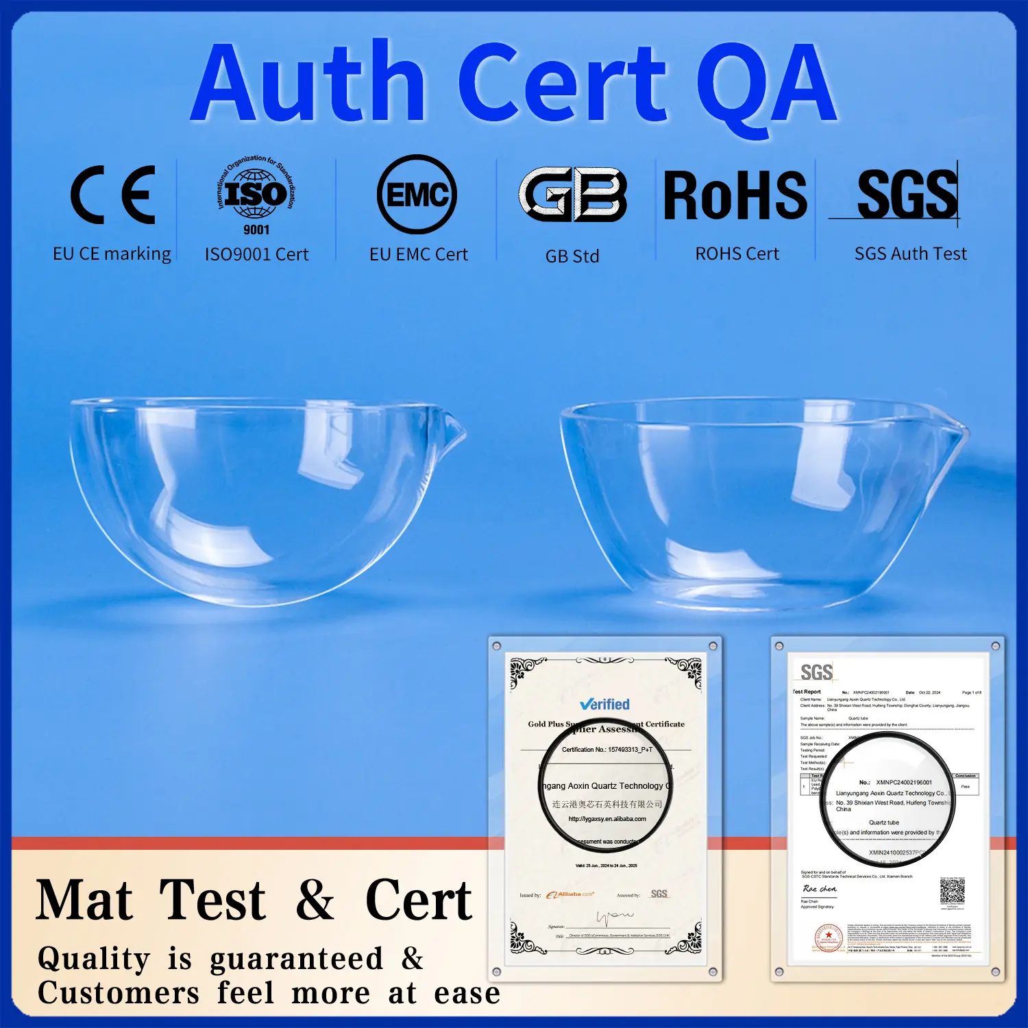 品質は当社の製造プロセスにおいて最も重要です。当社はISO 9001:2015認証取得メーカーであり、当社のプロセスが国際的な品質管理基準を満たしていることを保証します。また、当社の製品は純度と性能に関して厳格なSGS試験を受けています。当社は高純度原材料(SiO2 99.998%まで)を使用し、優れた熱安定性、高温耐性、化学的不活性を持つ溶融石英および溶融シリカ製品を製造しています。