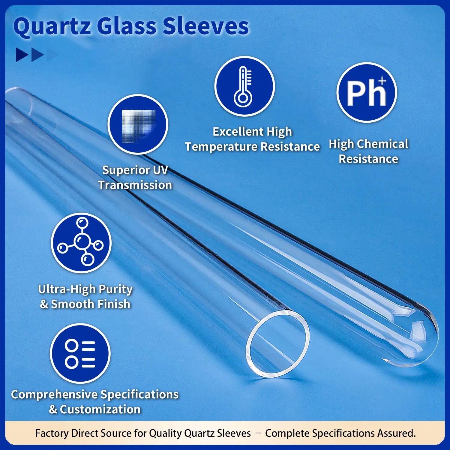 석영 재료의 초고순도는 주변 매체(물/공기)로의 불순물 용출을 최소화하고 광학적 열화를 방지합니다. 매끄러운 마감은 스케일 또는 침전물 축적을 방지하여 시간이 지남에 따라 UV 투명도를 유지하고 유지 보수 빈도를 줄이는 데 도움이 됩니다.