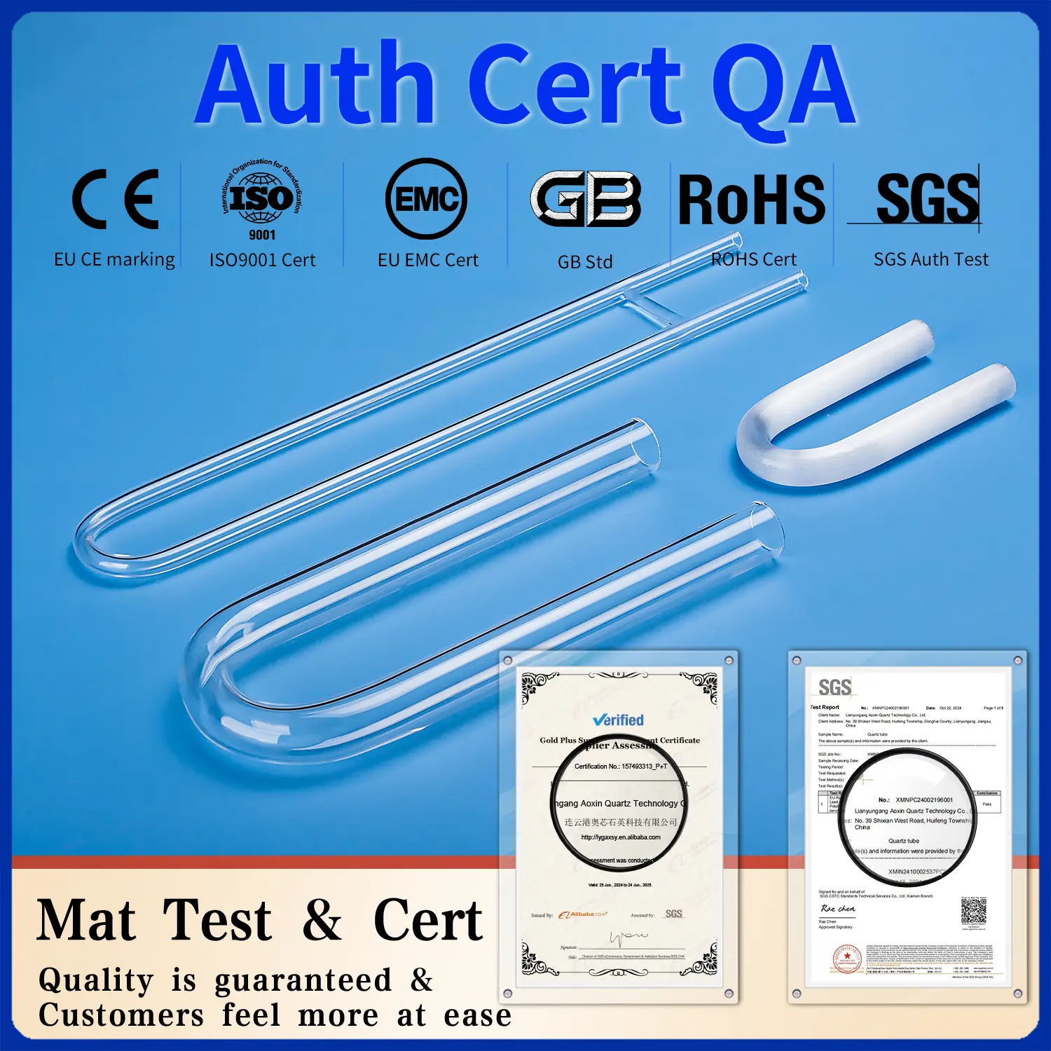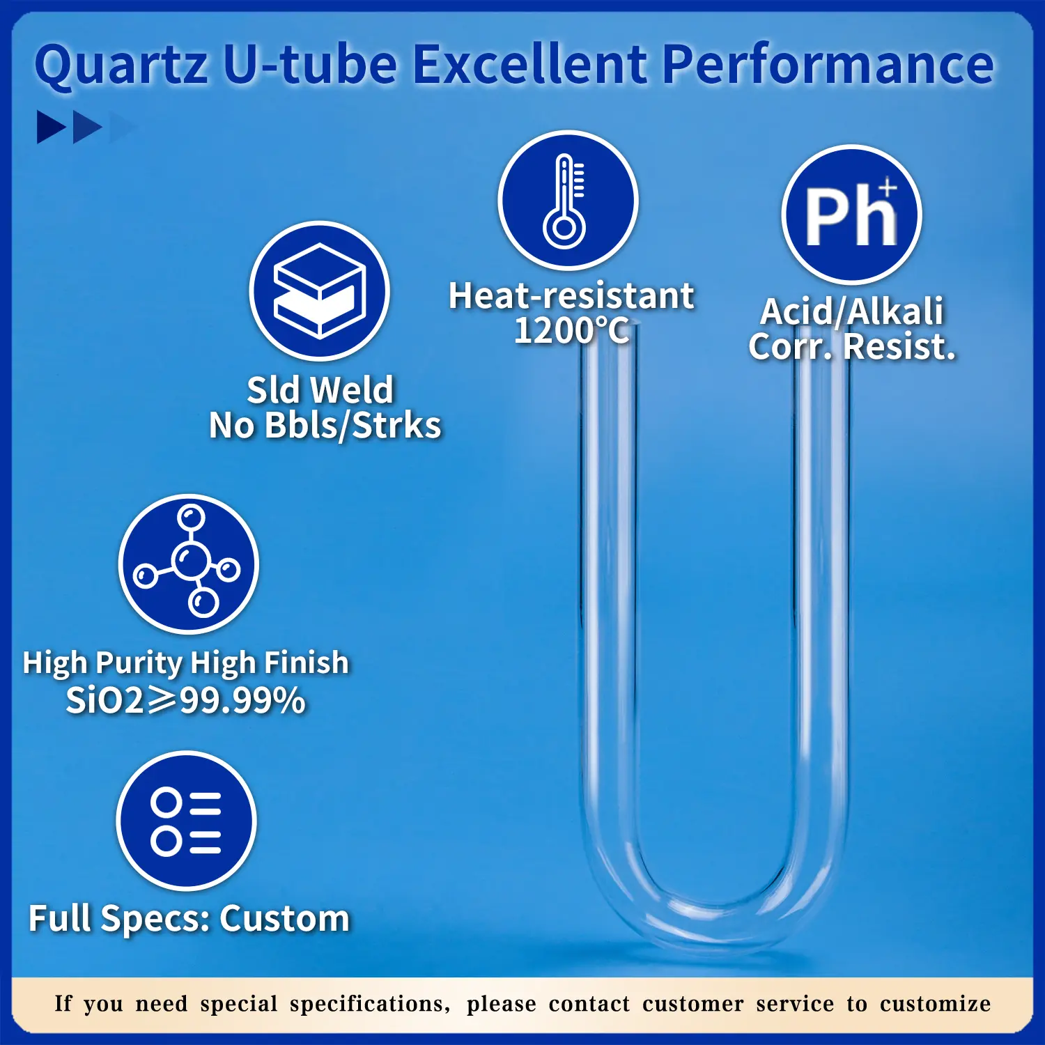 Beyond their impressive 1200°C heat resistance, these quartz U-tubes exhibit excellent resistance to thermal shock, allowing them to withstand rapid temperature changes without cracking or deforming, making them ideal for high-temperature furnaces, thermal cycling, or sudden cooling processes.